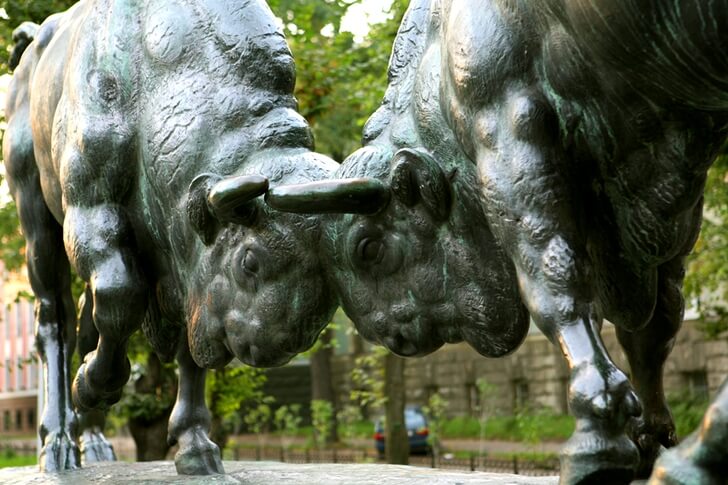 Скульптурная группа работы А. Гауля, созданная в 1912 году. Этот мастер был одним из самых известных анималистов своего времени. Композиция выполнена в виде фигур двух могучих зубров, сцепившихся между собой в схватке. Скульптура успешно пережила военные годы, она до сих пор украшает улицы Калининграда и является одной из городских достопримечательностей. В 2006 году ее реконструировали и восстановили фонтан.