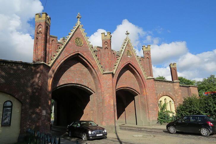 Сооружение в псевдоготической манере, выстроенное в XIX веке (самые первые ворота стояли здесь с начала XVIII столетия). Во время штурма Кёнигсберга они получили повреждения в результате бомбардировок, но все-таки уцелели. С 1960-го года сооружение считается культурным памятником, однако его не реставрировали до начала 2000-х годов и даже пытались несколько раз снести.